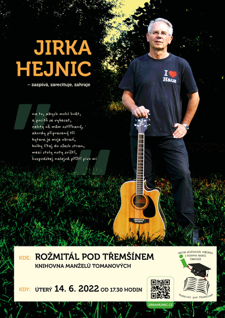 V úterý 14. června vás zveme na příjemný podvečer s písničkami Jiřího Hejnice, který vystoupí v rožmitálské knihovně se svou kytarou a nápaditými aranžemi písniček. Představí skladby nejen ze svého CD, ale i mnohé další, které budou doplněny vizuálními prvky. Některé texty vám také zarecituje a tak je komorní prostředí naší knihovny pro toto vystoupení přesně to pravé. Přijďte si zpříjemnit den. Program začíná v 17.30